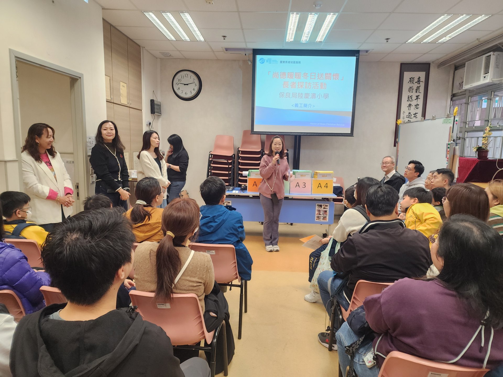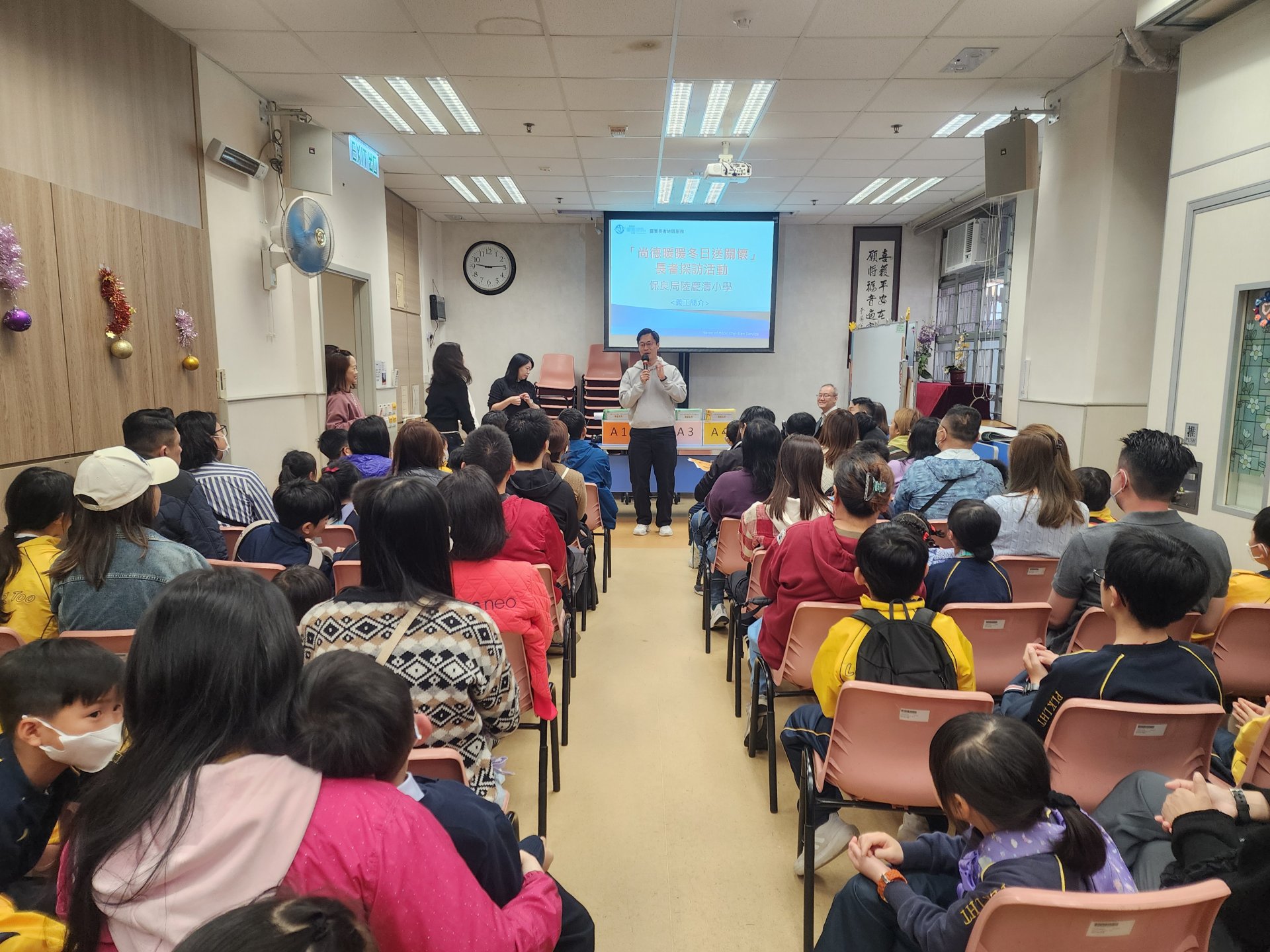 本年度訓育輔導組與家長教師會再合辦愛心傳城親子義工服務-聖誕寒冬送暖大行動,活動於13/12/2025星期六圓滿結束,家長及學生共236人參與探訪,之前在學校進行訓練,當天到靈實長者地區服務—尚德中心集合,然後按照親子義工隊分組,探訪居於尚德邨的獨居長者及兩老家庭共150位,與長者慰問傾談,並送上各家長捐贈的禮物包、學生自畫的聖誕咭及進行小型表演,希望藉著是次活動,為他們增添愛與關懷、為曾經對社會作出貢獻的長者送上溫暖祝福。捐贈活動也能令學生體驗施予和關心其他有需要的人,培養學生對社會的承擔感。