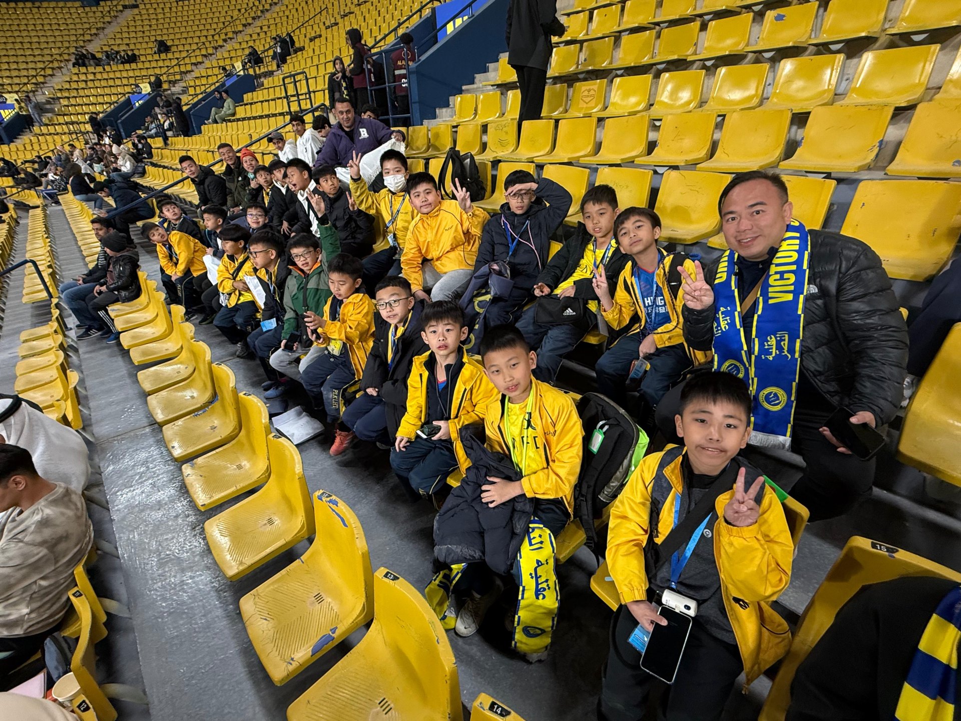交流團的高潮之一是觀看兩場沙特職業足球聯賽。其中一場更是見證了足球巨星C朗拿度效力的艾納斯隊比賽!孩子們在觀眾席上近距離感受頂級賽事的熾熱氣氛,看著偶像在綠茵場上奔馳,這一刻將成為他們足球路上難忘的激勵。