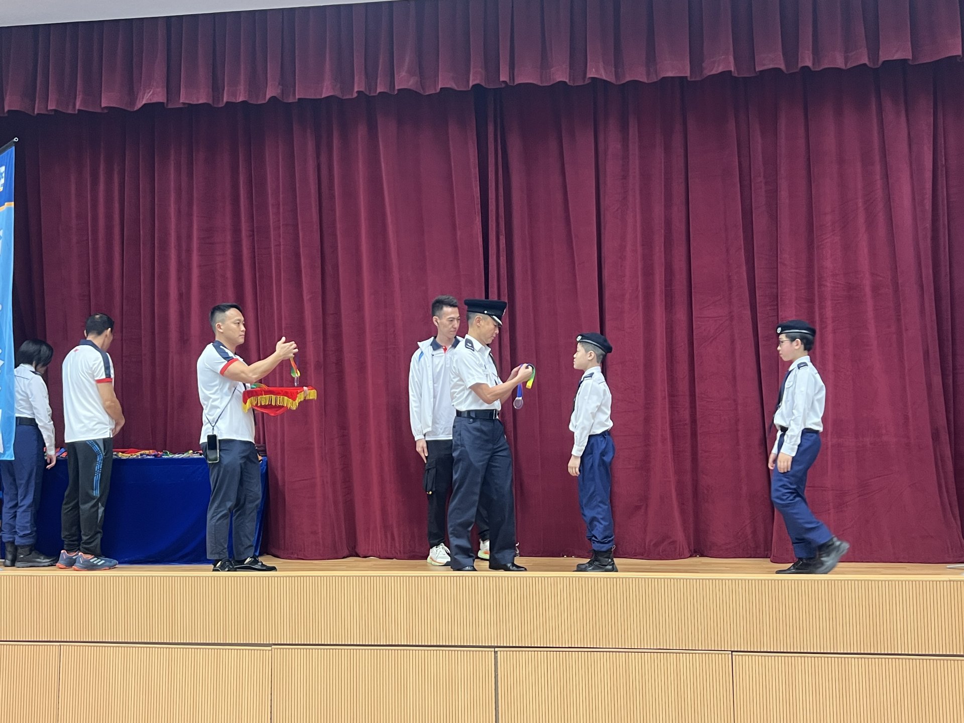為了讓升旗隊隊員對自己所學的升旗技巧有更深的認識,提供一個舞台讓同學展現學到的升旗技巧,並與不同學校的升旗隊互相切磋,學校安排升旗隊隊員參加「少年警訊中式升旗比賽」。升旗隊隊員更在2023年度的比賽獲得殿軍!